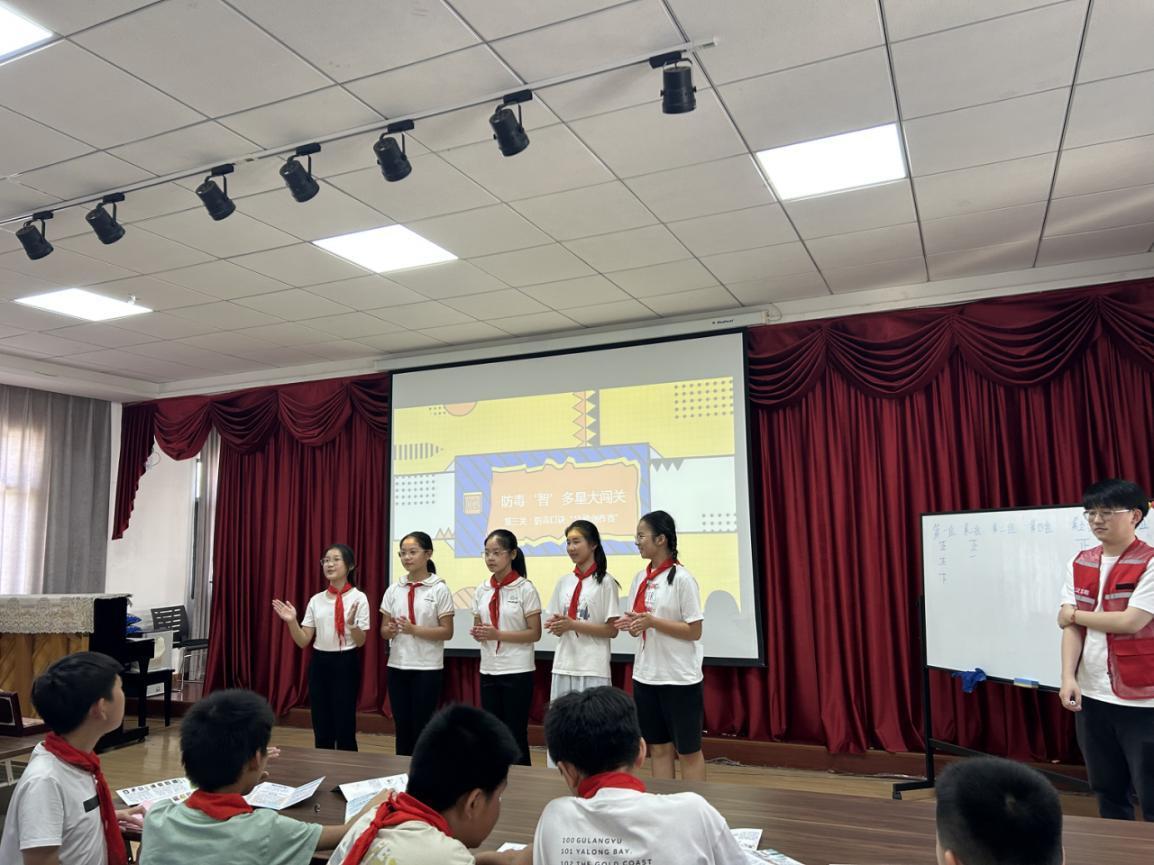 核心环节“防毒‘智’多星大闯关”巧妙融合知识性与趣味性。“麻精药品‘伪装者’快问快答”,工作人员展示伪装成邮票、电子烟油的毒品图片,孩子们火眼金睛踊跃辨识;“吸毒陷阱情景模拟”环节,孩子们分组演练应对商贩推销“草本电子烟”、网友赠送“聪明药”等陷阱,现场习得拒绝技巧;“防毒口诀15秒创作赛”,孩子们自创“陌生链接不点击,免费药品要远离”等口诀配合拍手操进行展示,创意与知识完美结合。