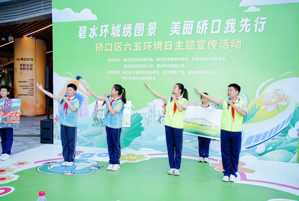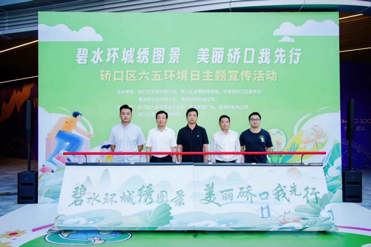 2025年6月5日,第54个世界环境日当天,武汉市硚口区以“碧水环城绣图景・美丽硚口我先行”为主题的环境日宣传活动在武汉恒隆广场举行。本次活动由硚口区生态环境分局、共青团硚口区委、硚口区发改局联合葛洲坝生态环保公司、葛洲坝供应链公司共同举办。活动现场邀请了辖区重点企业代表、青年志愿者、青少年学生和居民代表共计200余人参加,并通过图片直播方式营造宣传氛围。