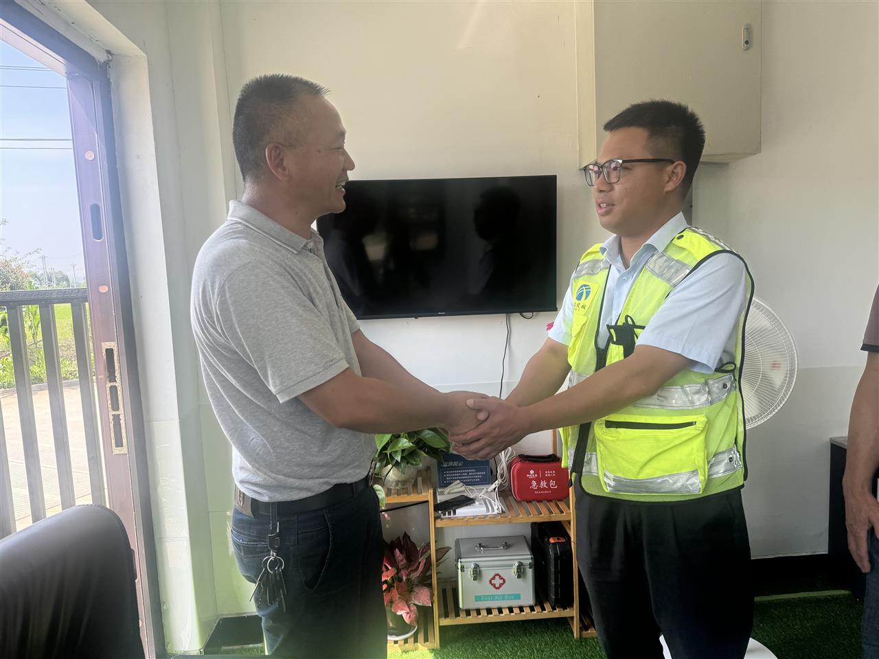 司机握着工作人员的手,不住地说“谢谢”