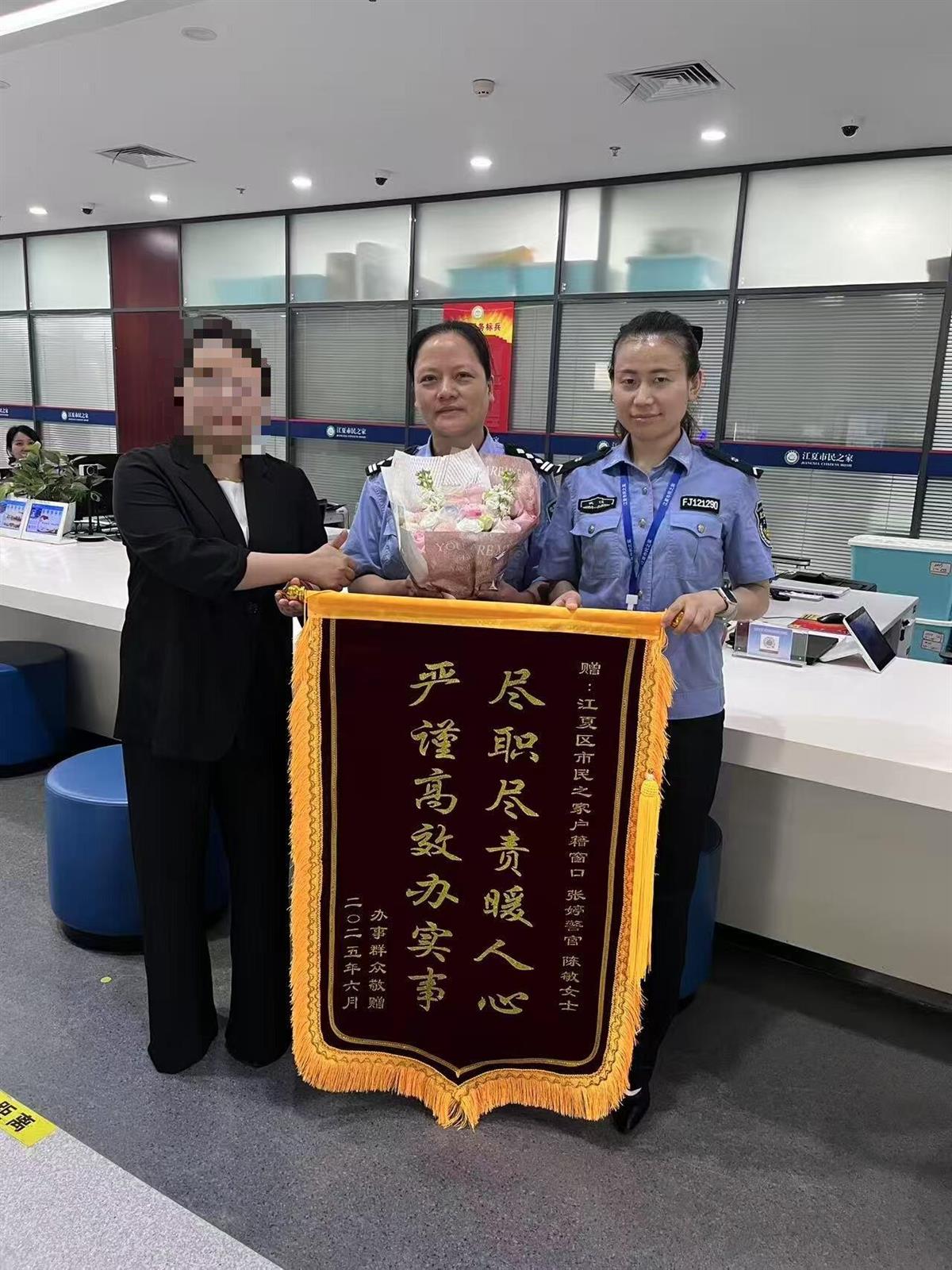 “真是太感谢了!没想到仅凭复印件也能这么快办好,解决了我的大难题!”6月6日上午,市民肖女士专程来到江夏区市民之家公安窗口,将精心准备的锦旗和鲜花送到工作人员手中,对两周前窗口提供的暖心高效服务表达由衷感谢。
