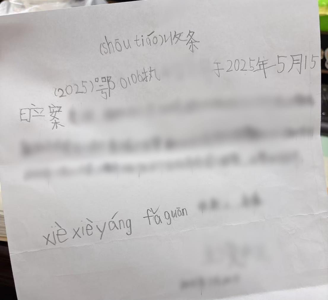 “xie xie yang fa guan”。近日,武汉市武昌区人民法院执行局执行干警杨冠乔收到来自6岁小朋友的一封道谢信。三天时间,武昌区法院执行局执行完毕了2万元的抚养费。