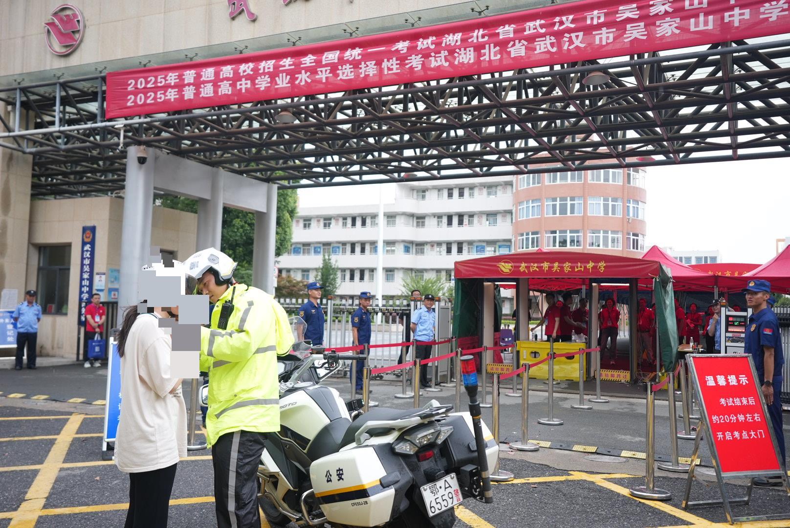 6月7日8时13分,正在东西湖区吴家山中学考点执勤的东西湖交警快骑队员蔡俊男发现路边一名考生及其家长面色焦急,便上前询问。原来,该考生将准考证和身份证遗忘在了家中。