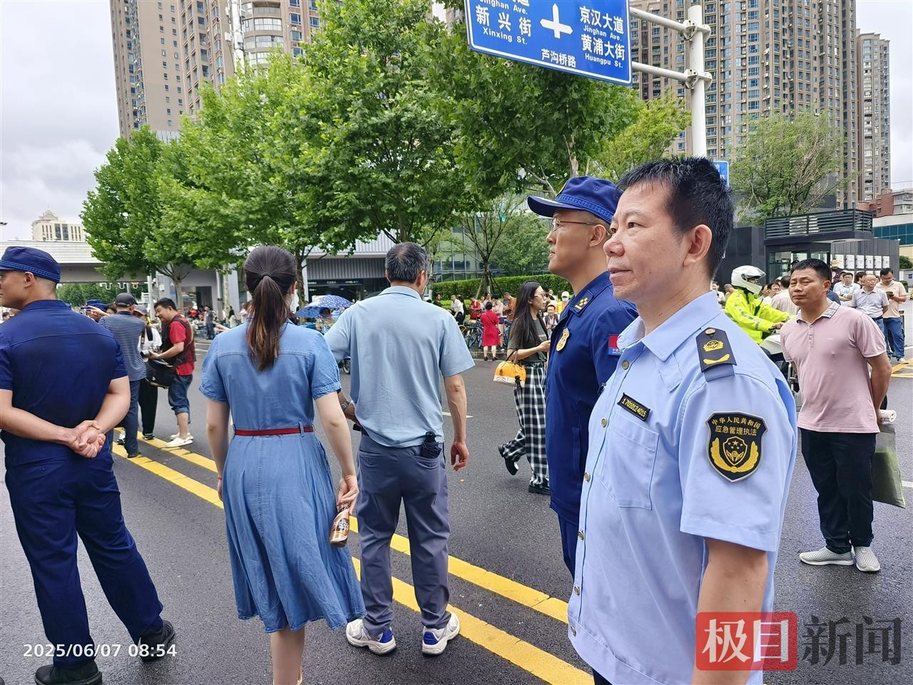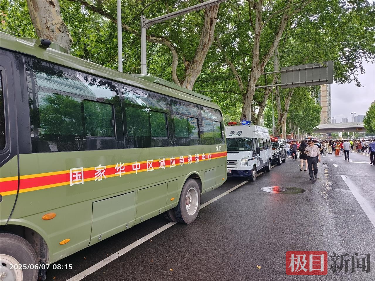 7日一早,新闻记者来到武汉二中考点,此时天降细雨,路面未见渍水,公安、应急等力量已在考点外执勤。江岸区应急管理局指挥中心主任黄刚介绍,根据市应急管理局统一部署,国家华中区域应急救援中心湖北机动队伍在此处调派了20名指战员执勤。江岸区应急管理局也安排了社会救援队伍、社区应急服务站等力量就近值守。据悉,武汉市应急管理局此次协调国家华中区域应急救援中心湖北机动队伍出动600余名指战员,在全市23个易滞水考点前置备勤。