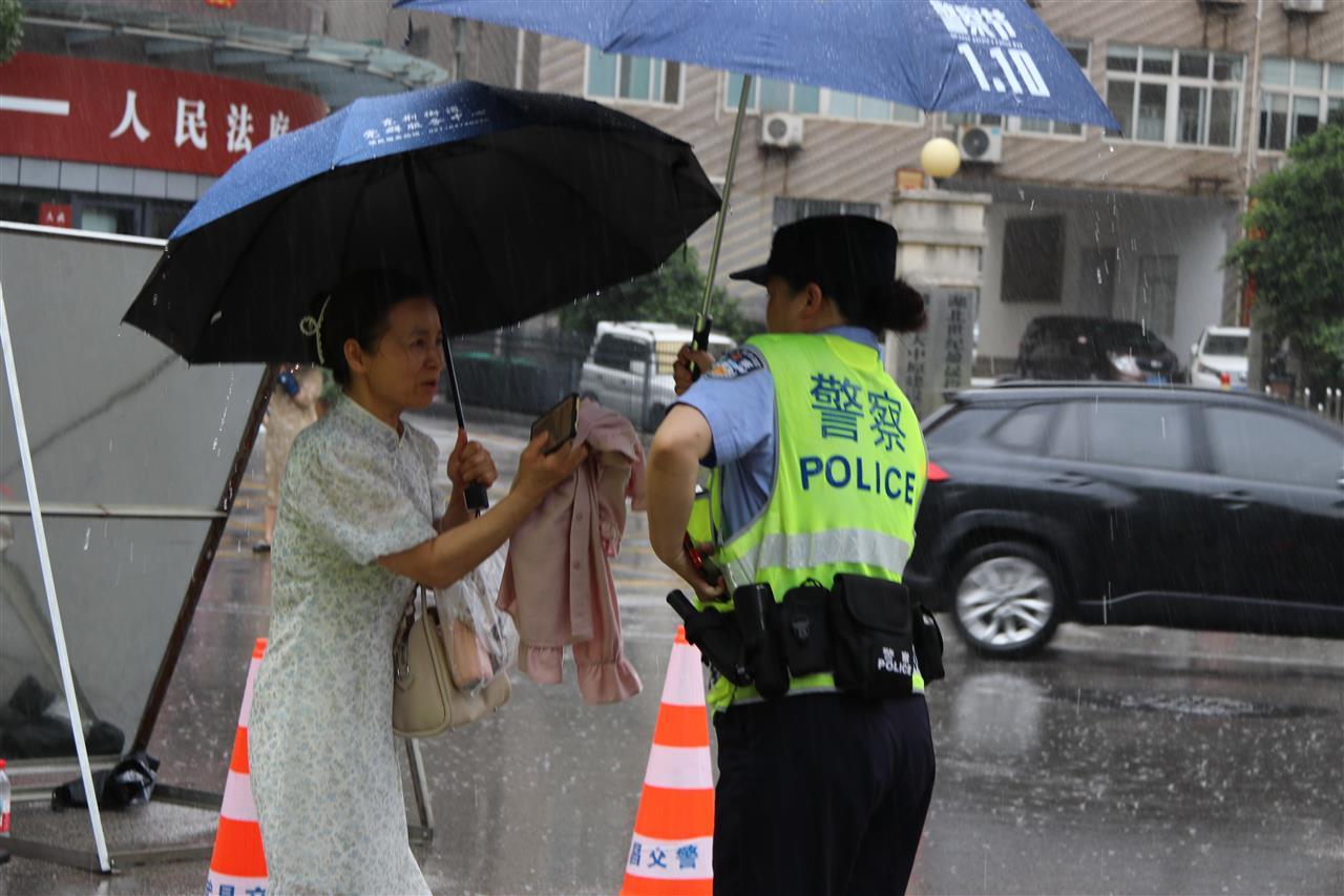 “我感觉好冷,但是马上要进考场了。”上午8时许,考生小蓉(化名)在水果湖高中考点前犹豫不决,水果湖派出所民警全凌雅上前了解情况后,主动通过手机与小蓉的母亲取得联系。8分钟后,小蓉的母亲带来了外套,此时突然飘来一阵大雨,全凌雅接过小蓉的外套后,护在怀里防止衣服打湿,并在考场前用纸条写好考场号码,附上加油的祝福,交由考场监考老师传递,将外套交到小蓉手里。