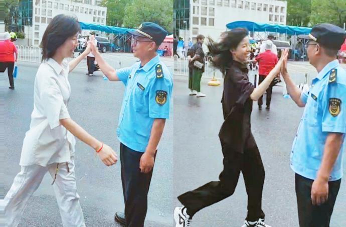 李毅与参加高考的双胞胎女儿击掌,鼓励她们考出好成绩
