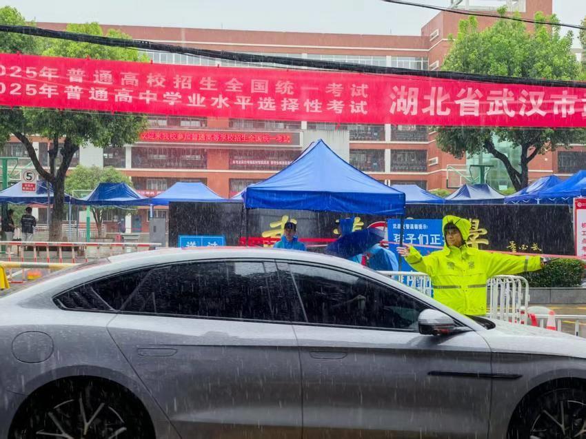 2025年高考期间,武汉遭遇倾盆大雨。武昌公安民警全力守护,确保考试安全、顺利进行。
