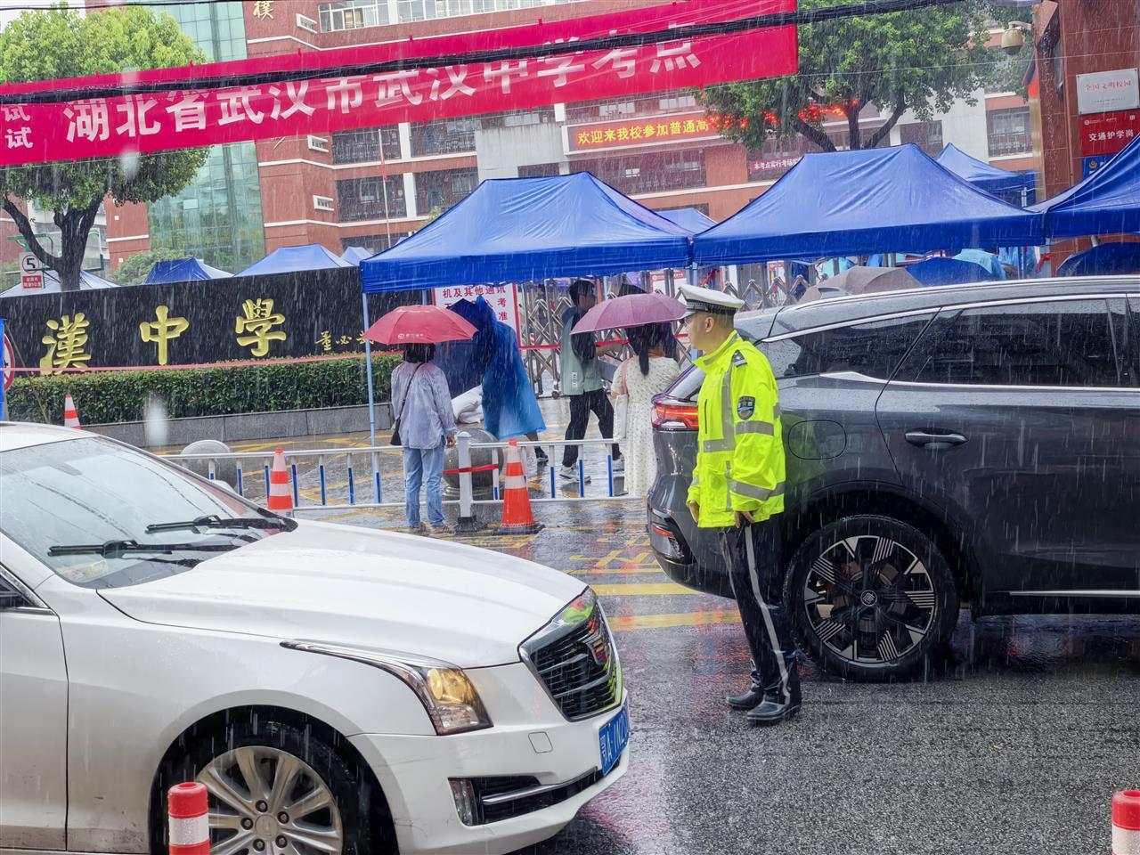 王毅参加了10余次高考护航,但今年高考遇到连降大雨。武汉中学周边还有十四中考点、昙华林景区,虽然交通环境复杂,但有了交警积极疏导、周边群众配合,冒雨打赢了考点“攻坚战”。