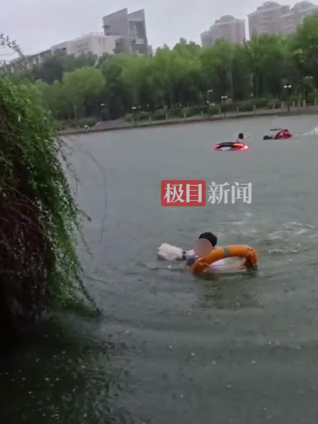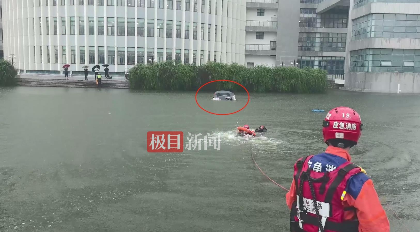 2025年6月8日早上7时15分,在武汉市东西湖区环湖中路某高校内,一辆小轿车不慎开入人工湖中,导致车内两人被困。武汉市消防救援指挥中心迅速调派常青消防救援站、粤创消防救援站出动2辆消防车、11名消防员赶赴现场救援。