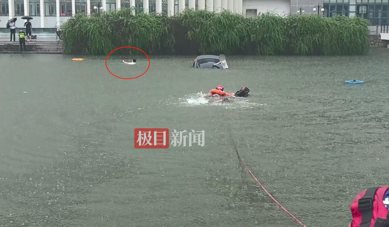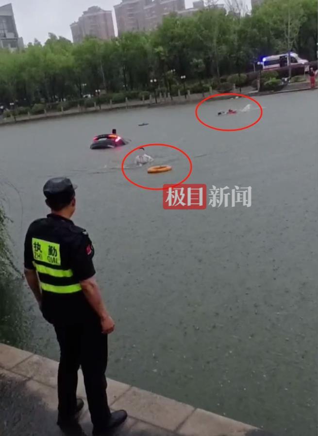 在车辆即将完全沉入湖中时,被困男子突然用尽全力向湖的另一边游去。对岸群众与保安立刻向男子抛去救生圈,并引导男子利用救生圈逃生。与此同时,消防员到达车辆下沉处,并在车辆完全沉没前,将女司机成功救出。