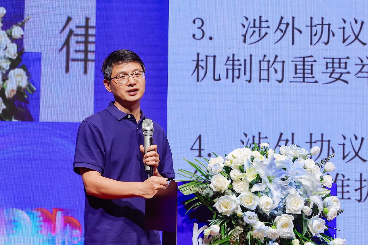 在主题演讲环节,黄勇教授深入剖析了制度型开放的内涵与意义,阐述了当前企业出海面临的新风险以及高标准规则挑战,如竞争政策、知识产权、劳工环保标准等方面的问题,并从政府、企业、法律行业三个层面提出了应对高水平高质量国际贸易规则的建议,为与会人员带来了深刻的洞见。