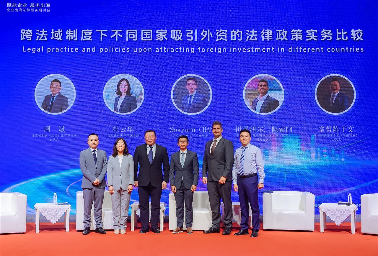 在圆桌会议环节,北京德和衡律师事务所高级合伙人,国际业务中心总监刘森律师作为主持人与北京德和衡(武汉)律师事务所合伙人周斌、北京德和衡律师事务所合伙人杜云华、巴西尹曼纽尔·佩索阿律师事务所创始人尹曼纽尔·佩索阿、柬埔寨达观律师事务所合伙人Sokyana CHAN、马来西亚赖于陈律师事务所合伙人拿督陈于文一同围绕中国吸引外资的四个阶段、立法上的转变、日本吸引外资政策、巴西吸引外资特点、马来西亚吸引外资态度、企业出海合规与风险防控等问题进行了深入讨论,各位嘉宾结合自身丰富的实践经验,分享了宝贵的见解与建议,为与会人员带来了更多的启发与思考。