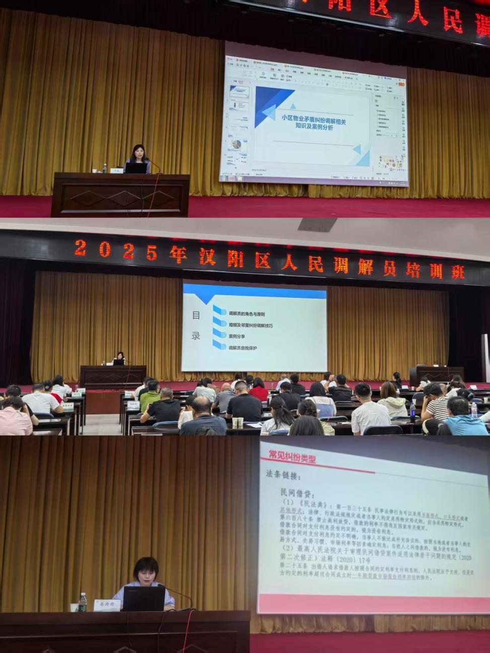 在专题授课环节,三位律师分别围绕经济债务纠纷、婚姻家庭及邻里纠纷、物业矛盾纠纷三大基层调解热点领域展开讲授。他们通过典型案例解析,系统梳理了相关纠纷类型、法律依据及化解路径,深入讲解了信息核实、利益平衡、协议规范、风险规避等调解实务要点,重点传授了包括“冷却法”“宣泄法”“背靠背调解法”及有效倾听沟通等关键技巧,并着重强调调解员需遵循中立、自愿、公平合法、保密等原则,为调解员解决“经济债”“家务事”“物业结”等难题提供了坚实的法律支撑和实用的操作指引。
