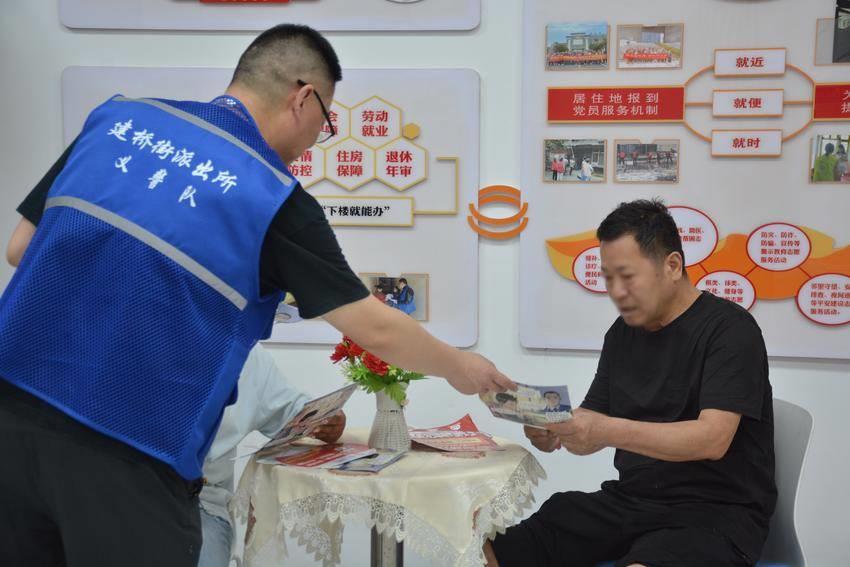 9时许,天空下起了绵绵细雨。义警队伍见不少家长在场外守候,主动邀请他们前往高考爱心休息点避雨。义警为家长端来热水,分发扇子,并宣讲禁毒、反诈知识,家长们连连称赞。