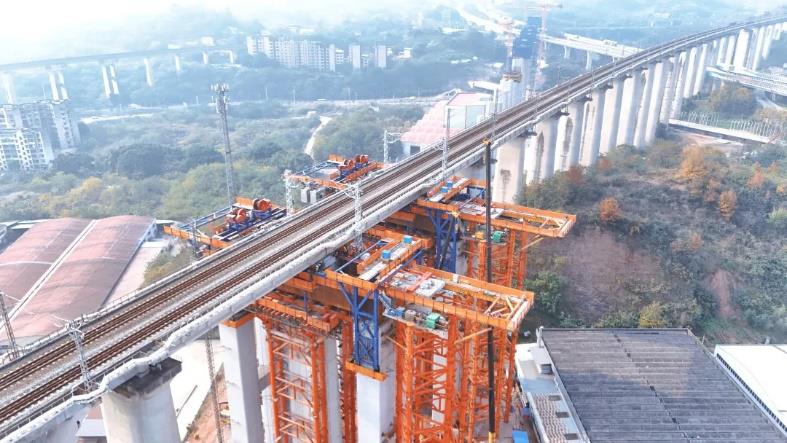 除此之外,在成渝中线重庆枢纽段1标“托梁换柱”施工中,技术人员结合智能感知算法,创新工艺,节约工期6个月,降低造价超1亿元,为铁路建设领域首例;研发的大型结构物安装测量定位系统,具备多项智能化功能,工效提升60%;开发的桥梁施工起重设备数字孪生监控系统,实现智能感知和精准控制,提升作业精度,减少作业时间。以上为代表的桥梁智能建造技术,引领了行业发展,应用在60余座大型桥梁施工项目中,助力桥梁施工提质保安。