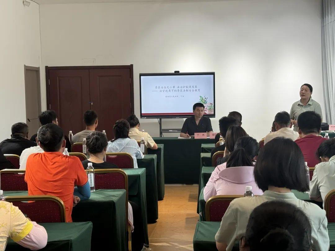 “景区安全不只是服务承诺,更是不可逾越的法律底线。”丁杰法官以真实案例为切入点,引导现场听众积极讨论思考,将景区安全保障义务、商户责任、消防隐患、食品安全、设施维护、游客安全共管、纠纷解决途径等法律知识,串联成保障景区安全的“生命线”。