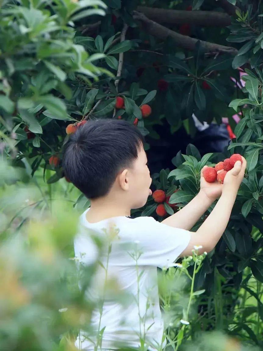采摘期的杨梅果园层层硕果累累,小朋友也能轻松摘到。果园不打农药、不施化肥,边摘边吃无负担。