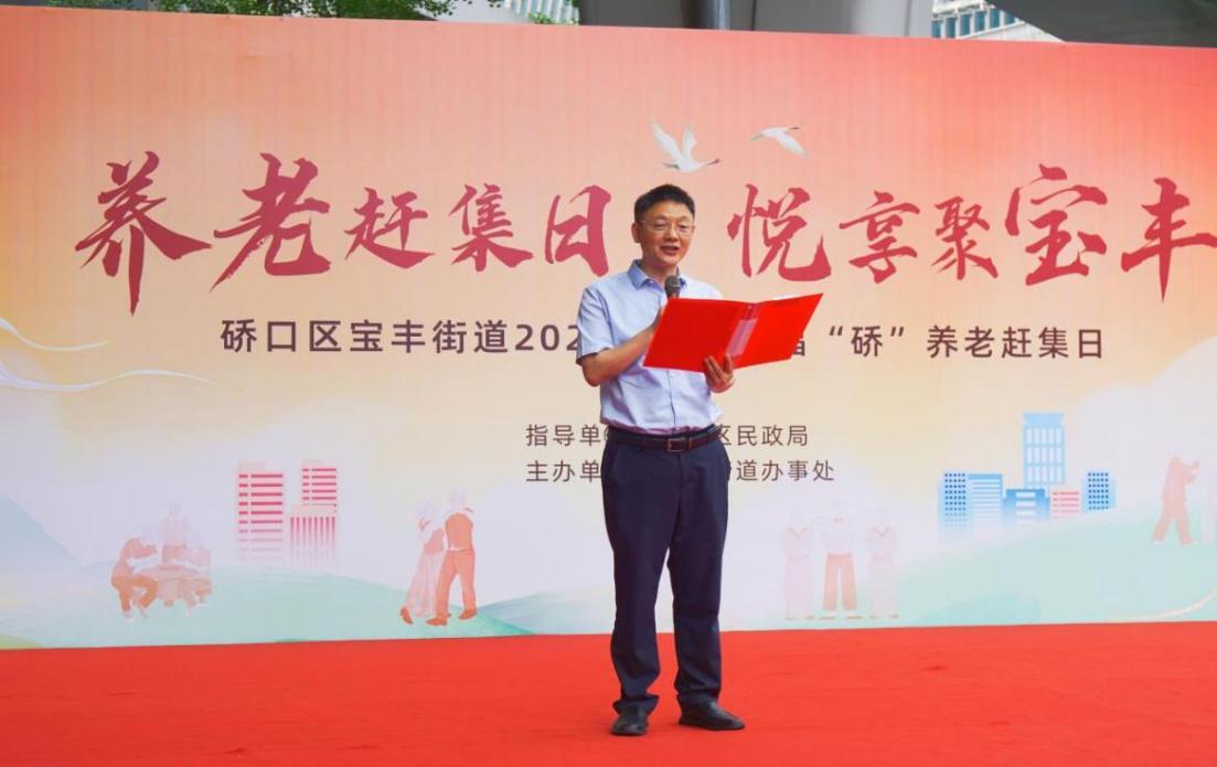 6月11日上午,武汉市硚口区宝丰街道在硚口路人民广场隆重举办“银龄幸福养老赶集日”大型户外观摩活动,模仿老年人赶集的形式,向老年群体集中展示、推介养老服务的创新成果,推广健康养老、积极养老的生活理念,营造温馨和谐的养老氛围。硚口区民政局、宝丰街道办事处、湖北广电等单位参加了此次活动。