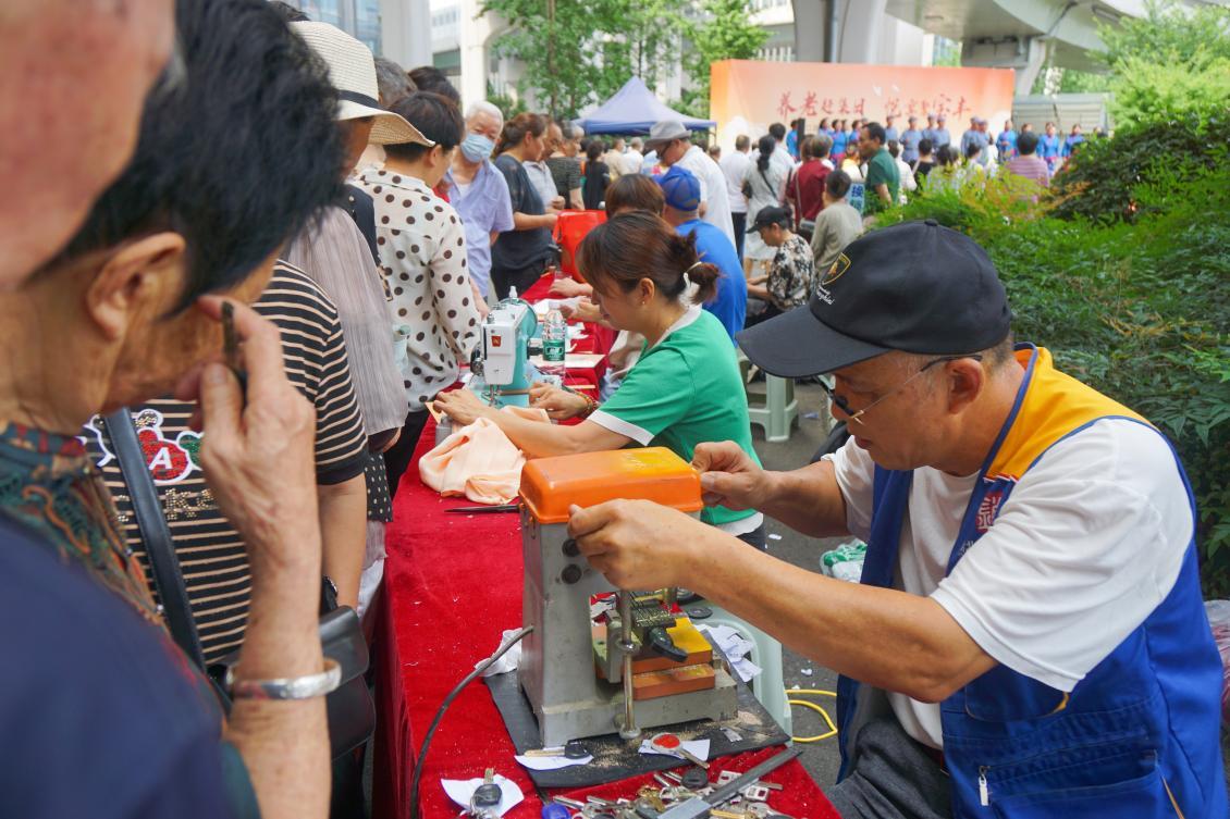 四大养老服务成果展示区域同样热闹非凡,“康泰颐养篇”区域为老人提供免费视力检查、口腔检查、血糖血压健康检测。“雅韵文娱集”区域的非遗传统技艺展示、手工艺品义卖吸引了众多爱心人士,社区幸福食堂的免费消暑饮品,带来了炎炎夏日的丝丝清凉。“智享银龄坊”区域有最前沿的适老化科技产品,手指康复机器人手套、外骨骼助行器等智能设备的操作展示,吸引许多老人驻足观看。“善暖公益廊”区域开展了旧物置换、防诈骗宣传和禁毒宣传、爱心献血、更换第三代社保卡等公益活动,让老年人受益匪浅。