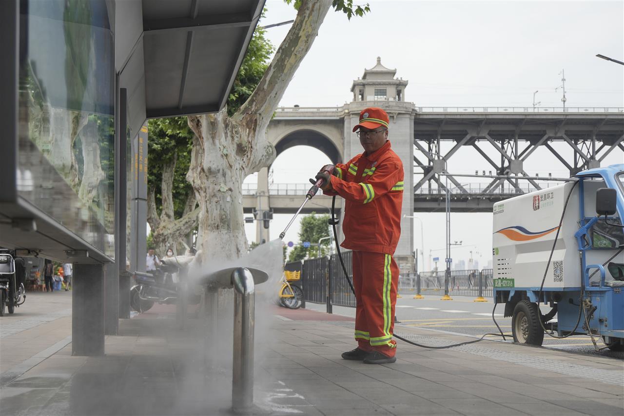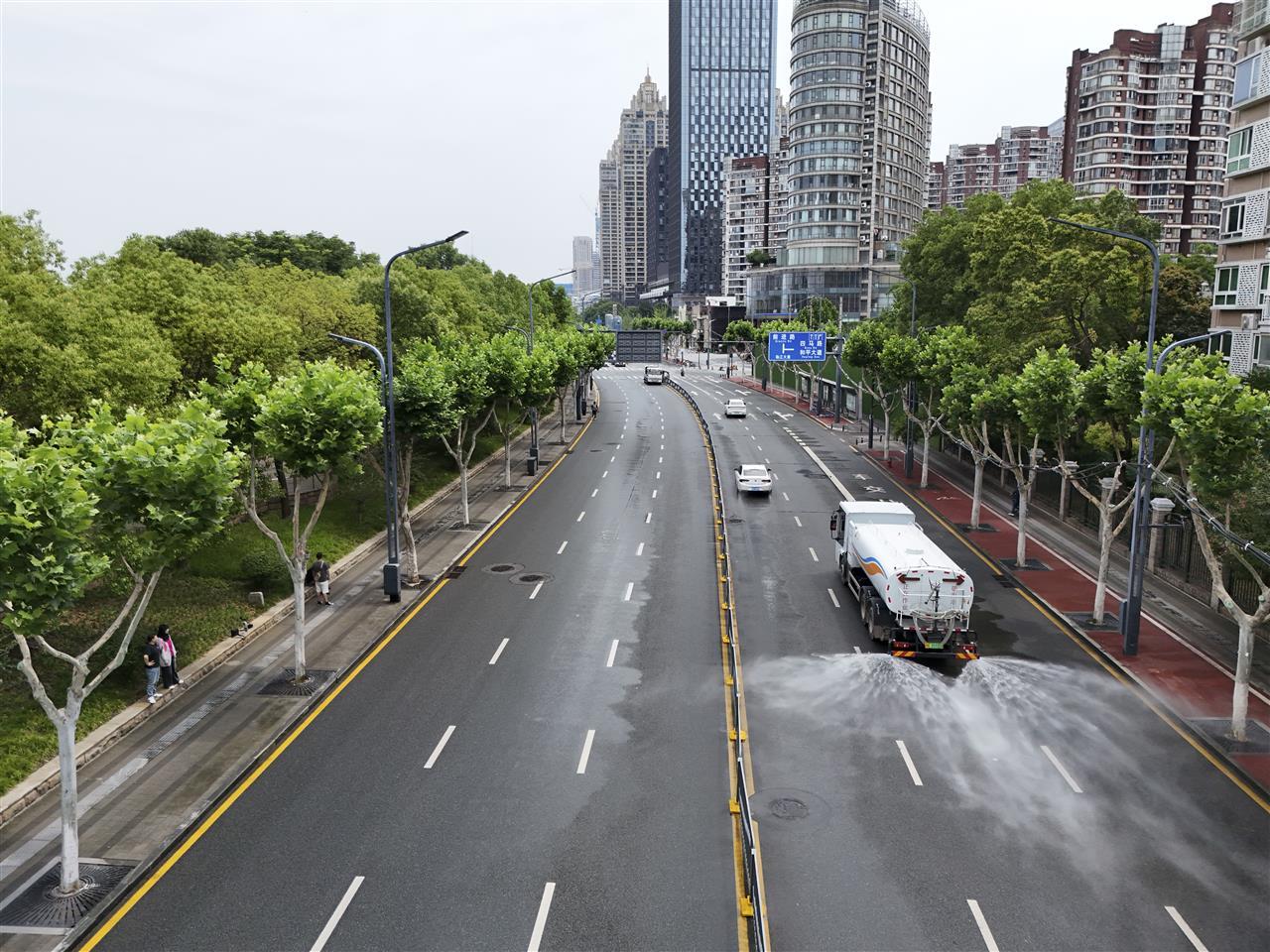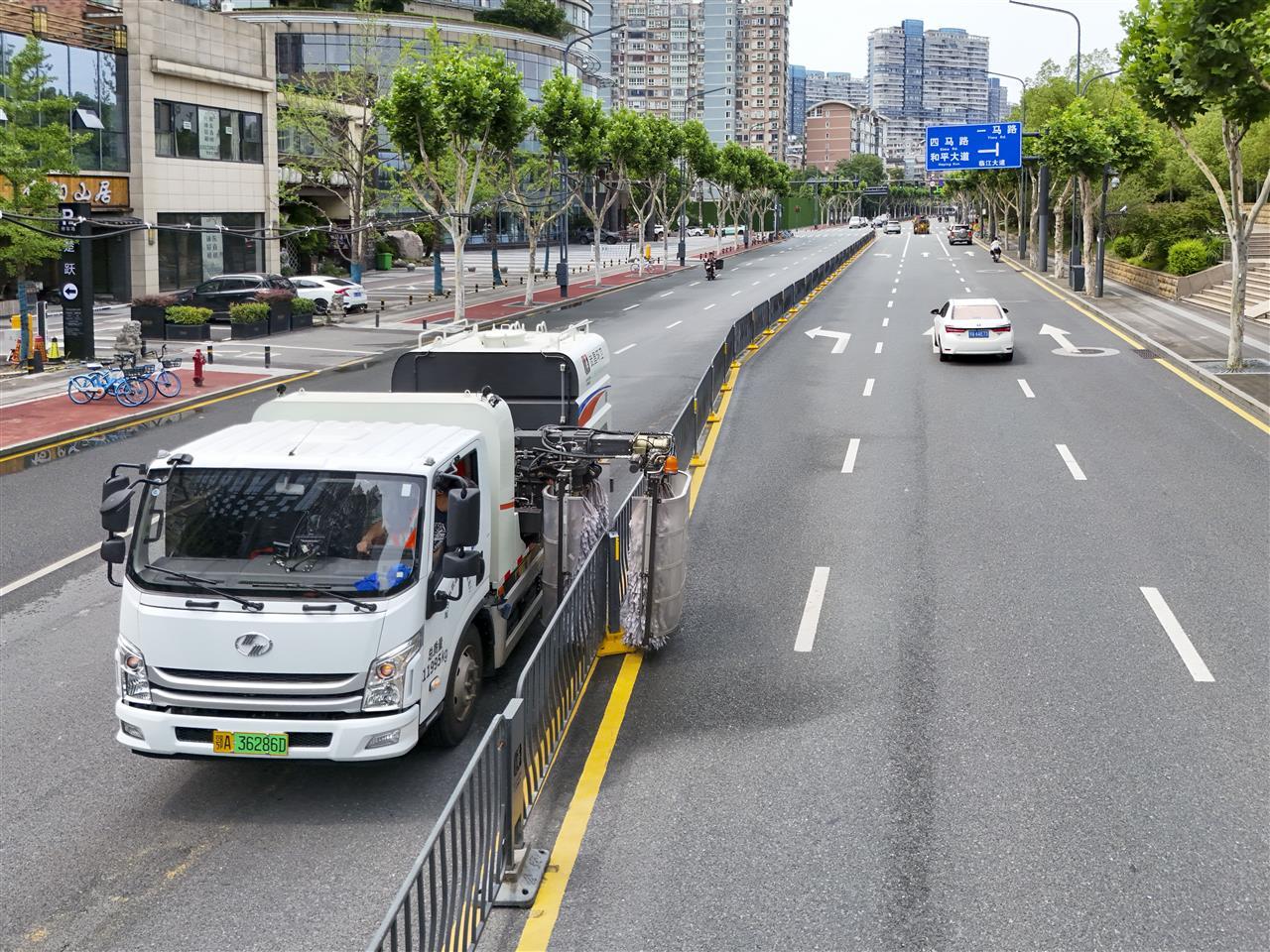 沿线道路上,多功能雾洒车与洗扫车配合默契,车辆经过之处,对路面清洗的同时,起到洒水降尘的作用。“雾洒作业时司机结合路面实际情况调整喷水方向和水压,喷出的水呈扇形、雾状,做到路面均匀覆盖、见潮不见水流。”二桥清洁队司机班负责人范建华介绍,机械设备相互配合下作业,能够极大提升效率。