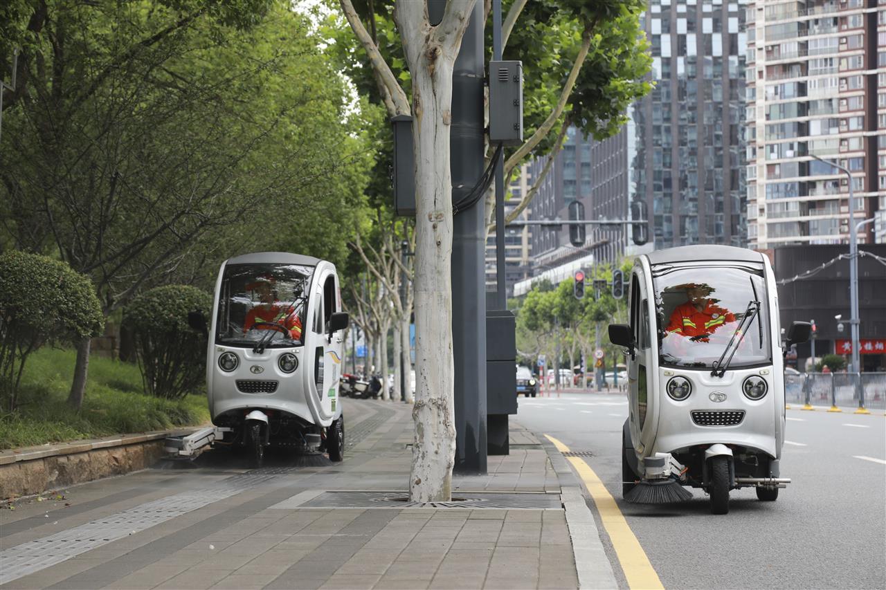 环卫工人驾驶电动车巡回保洁 卢成汉摄