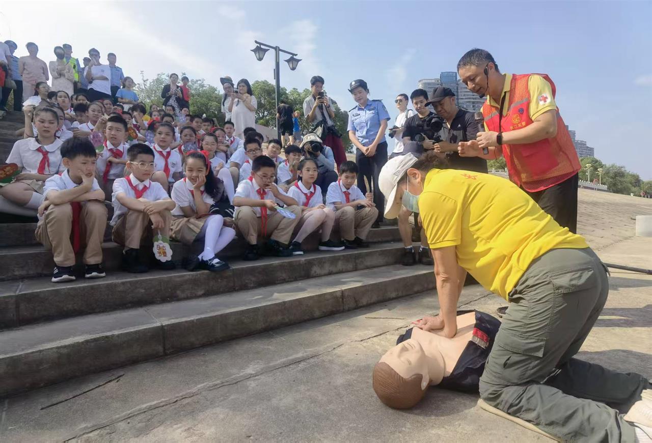 “在江边踩在湿滑的斜坡上时我才意识到危险离我们这么近!”6月13日清晨,由武汉市公安局、武汉市教育局和湖北长江云新媒体集团联合举办的武汉少年警队长江大保护·夏日防溺水主题实践活动,走进武汉市公安局水上分局大桥派出所和长江救援队,来自中华路小学金都校区的60名同学代表系统学习了防溺水知识与溺水自救小技巧,并现场观摩了长江义警心肺复苏、溺水救援实操演练。
