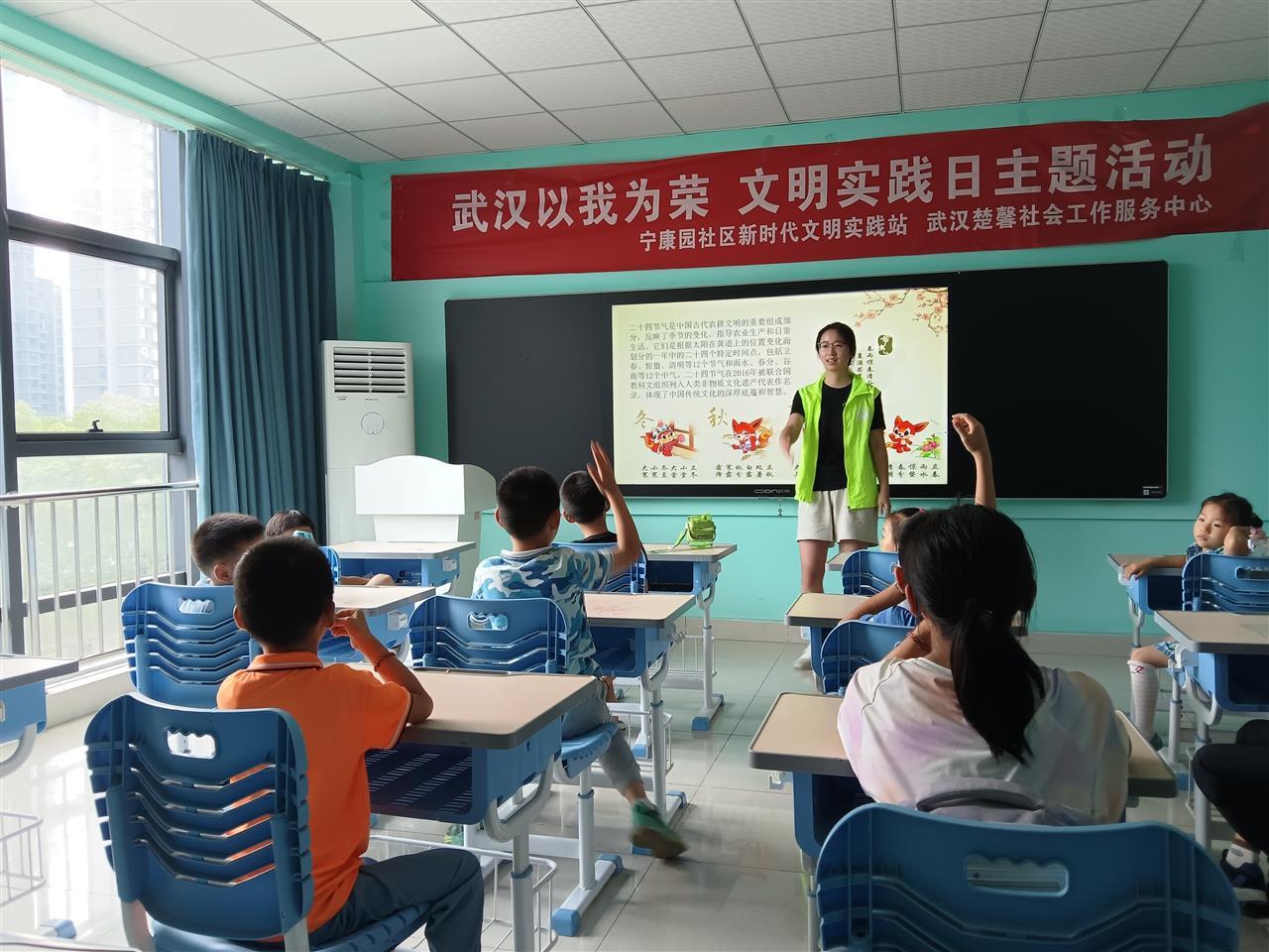 6月13日,武汉经开区沌口街道宁康园社区新时代文明实践站联合江汉大学外国语学院,开展“节气润童心 文化伴成长”主题活动,以中英双语教学为桥梁,带领辖区青少年沉浸式探索中华传统节气文化。
