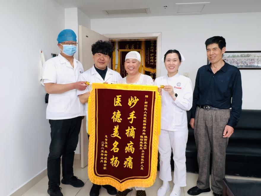 “两次把我从鬼门关拉回来,太感谢了!”6月13日,一面饱含感激与重生的锦旗被郑重递到新洲区人民医院神经外科主任陈西亚手中,递锦旗的患者熊女士(化名)握着陈西亚的手连连感激。过去一年里,熊女士接连遭遇脊柱椎管内肿瘤与复杂颅内脑膜瘤两大“生命杀手”的致命威胁,历经三次高难度手术,在陈西亚团队的救治之下,实现无后遗症的完美康复。