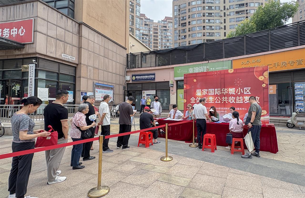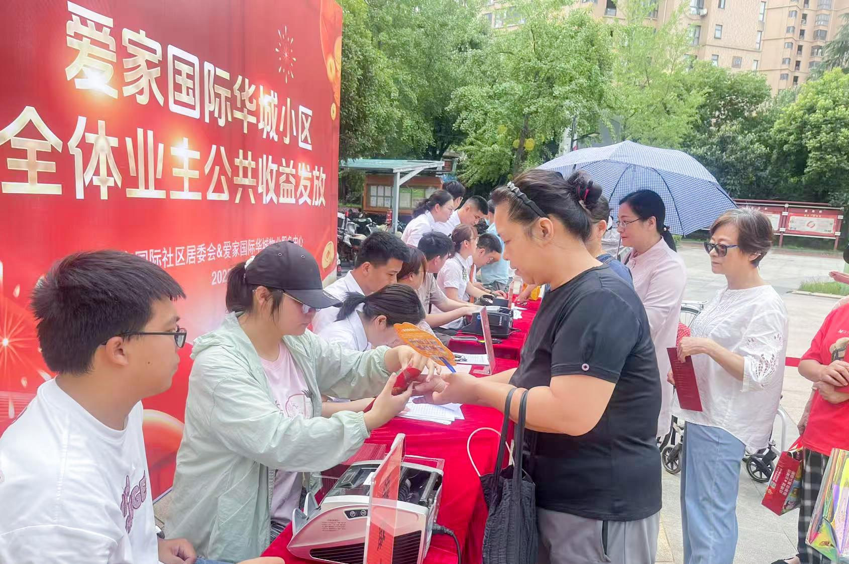 “五天来已发放1150余户。”爱家国际华城万科物业负责人张经理介绍,小区的公共收益主要来源于小区停车及电梯广告等收益。为确保资金使用公开透明,社区组织召开临时业主大会,广泛征求业主意见,关于每户发放200元的议题,同意率达到86%。“拿出部分资金给大家发点福利,让每位业主都能享受到小区发展的红利。” 张经理表示,此次发放公共收益不仅是对业主的回馈,更希望借此增强大家的归属感和认同感。