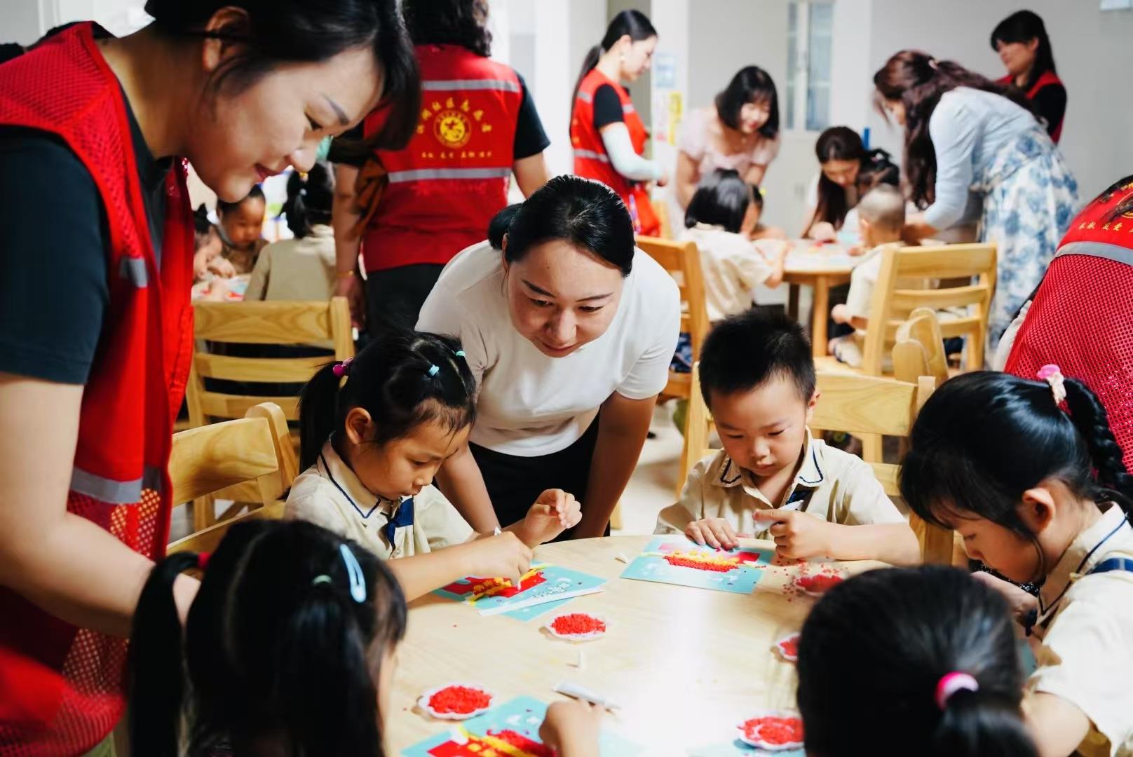 6月13日,武汉经开区沌阳街道滨湖社区党员志愿者与孩子们共同开展剪纸、绘画、环境创意改造等创作活动。活动现场,孩子们用稚嫩的双手、天马行空的想象,以艺术为笔,抒发对家园的无限热爱。