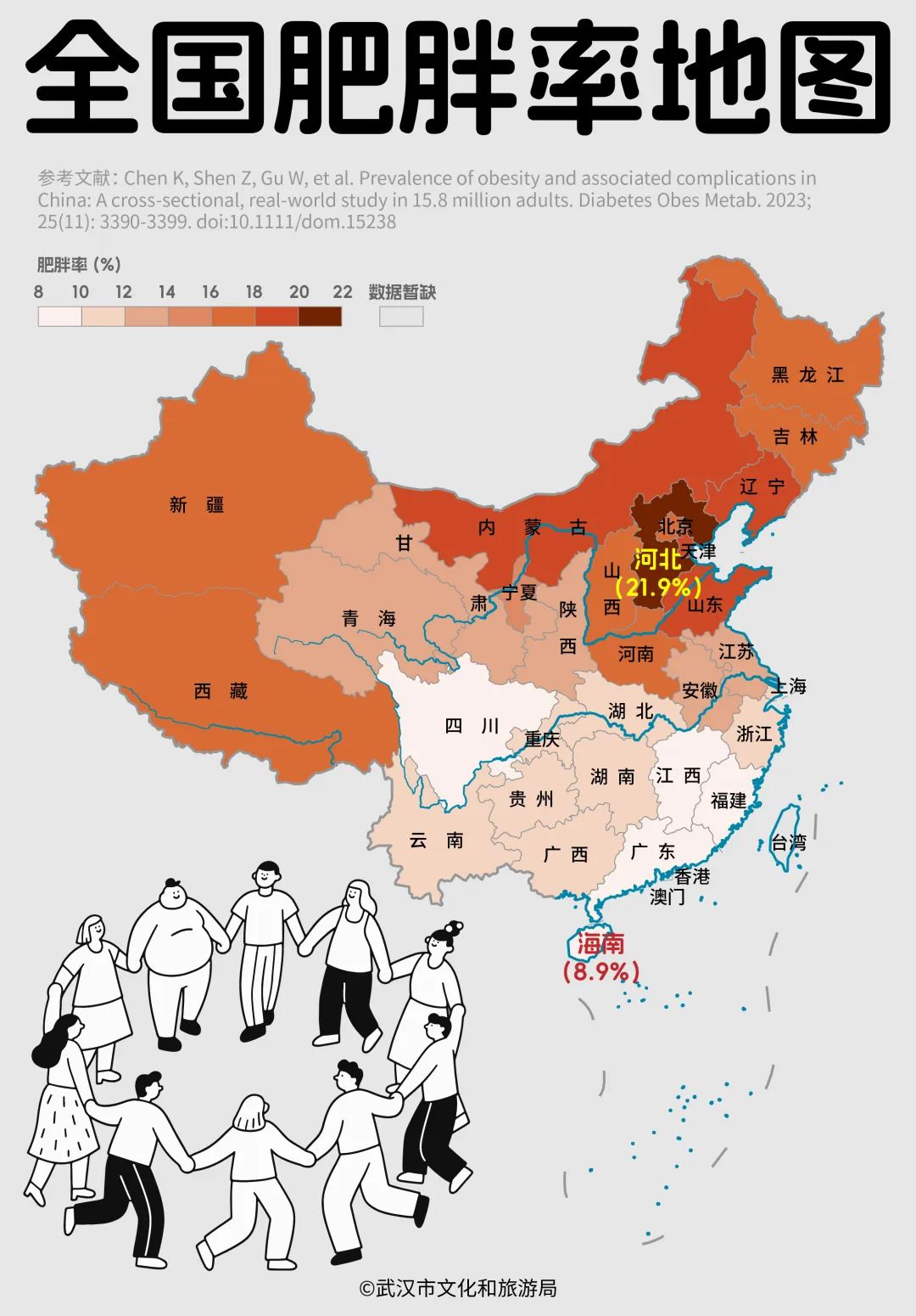 △武汉的数据与全国肥胖率分布图数据来源不一样,对结果有一定影响,仅供参考