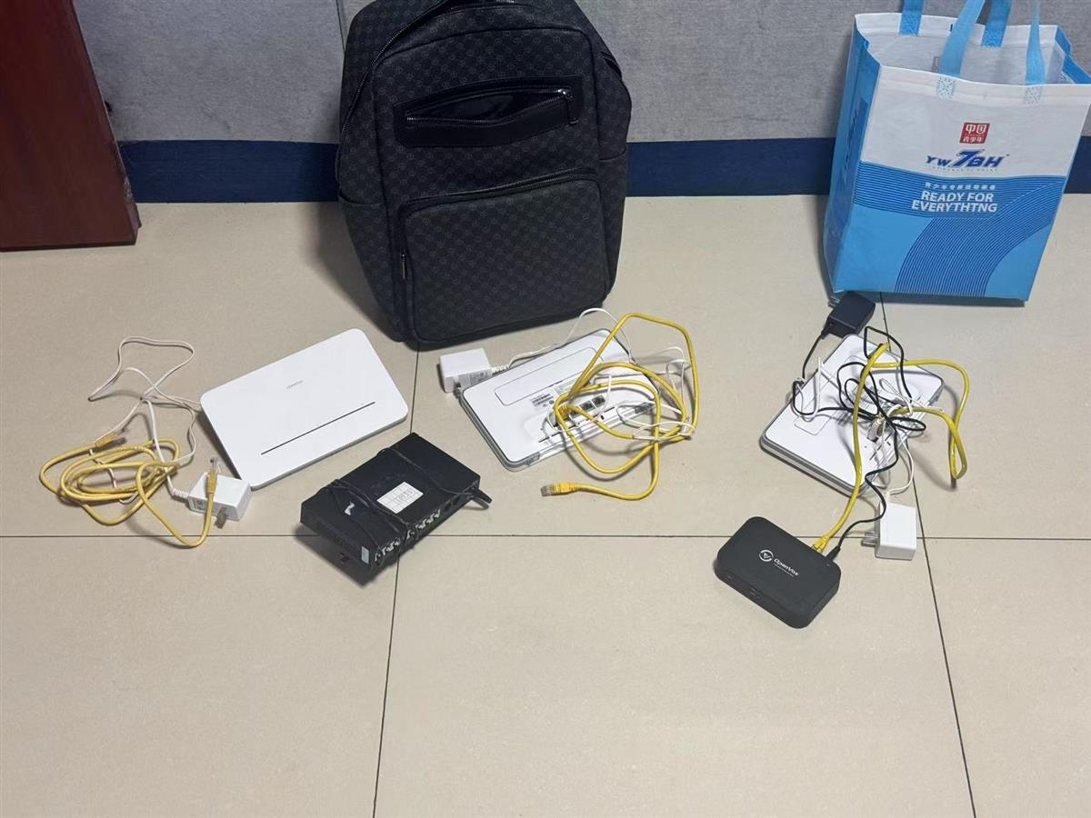 无独有偶,就在闵某、高某落网当天,球场街派出所接到新疆警方通报,前期侦办的一起涉诈案件取得重大突破。回溯4月中旬,球场派出所曾接到辖区酒店报警,称发现在客房内藏匿可疑VOIP设备(将境外诈骗电话伪装成本地固定电话号码的设备)。经查,一名男子伙同他人在市内多家酒店秘密架设此类设备,导致多起大额电诈案件发生。