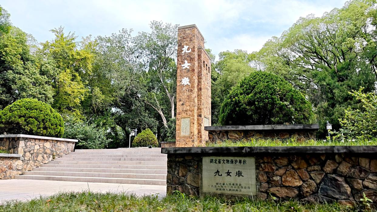 九女墩始建于1952年,为湖北省文物保护单位。“1855年2月太平军攻克武昌后,获得解放的妇女积极参加起义军。新中国成立后,人民政府为纪念这9位无名英雄,应乡人之请于1952年培修陵墓,坪台上建纪念碑1座。碑以石块砌成,顶部悬有铜铃,正面镌刻董必武撰写的《九女墩记》,碑阴和两侧刻宋庆龄、郭沫若、何香凝、张难先等人题词。这里是东湖风景区内珍贵的人文历史地标。承载着重要的历史记忆与爱国主义精神。”东湖风景区相关负责人介绍,经过70余年历史沉淀,其保护状况一直备受关注。