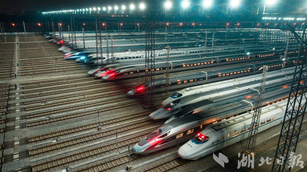图为动车组列车在武汉动车段集结。通讯员 邹政 摄