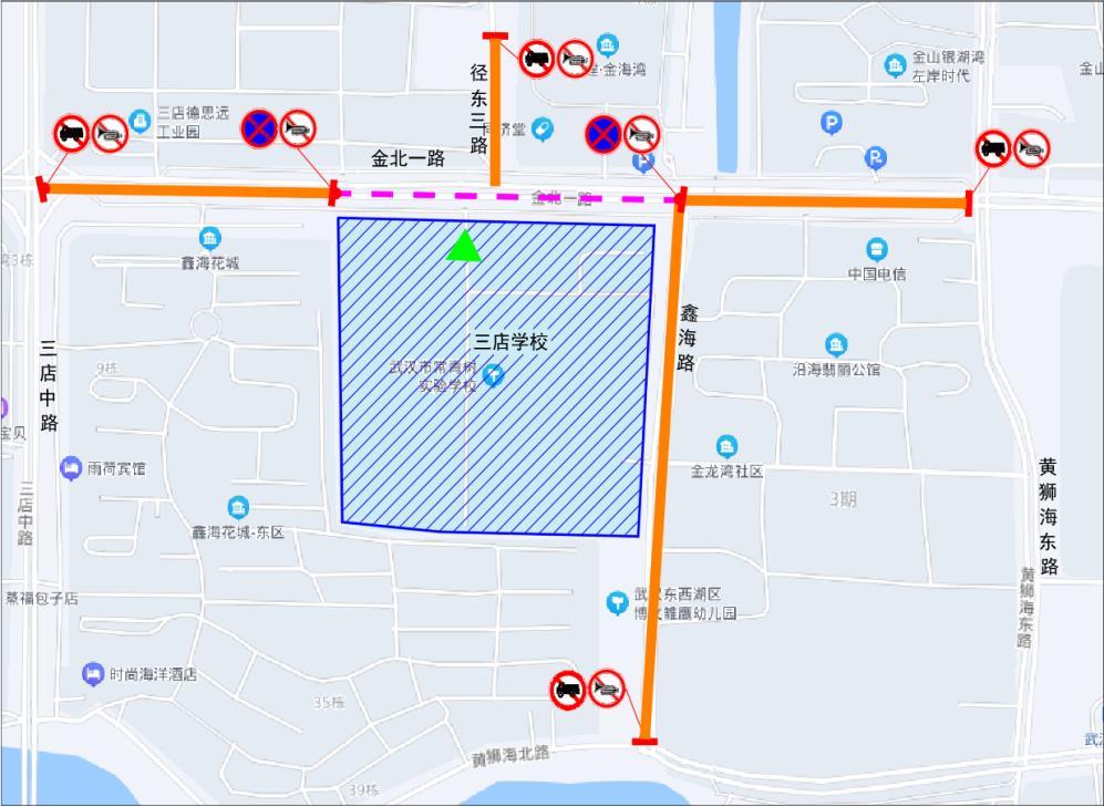 6月20日、6月21日(每日7时至17时30分),6月22日(7时至12时)期间,金北一路(黄狮海东路至三店中路)、鑫海路、径东三路(创想路至金北一路)禁止货车通行;金北一路(鑫海花城小区至鑫海路)禁止机动车停放(含南侧辅道停车泊位);鑫海路、径东三路禁止机动车停放(除停车泊位外)。