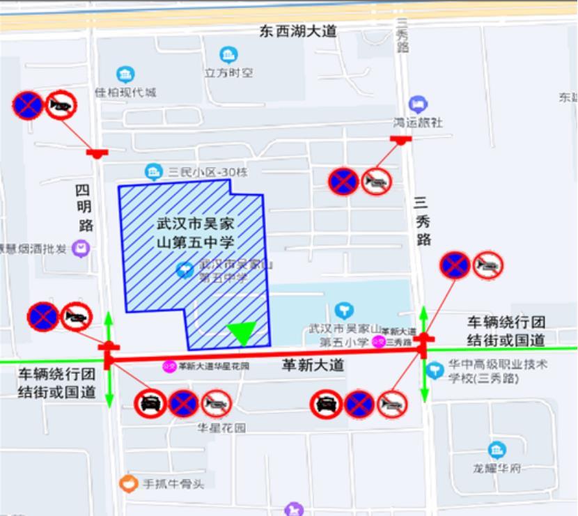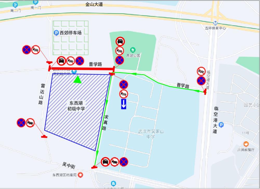 2025年武汉市高中阶段学校招生考试(以下简称“中考”)将于6月20日至22日举行,东西湖区设有吴家山第二中学、吴家山第三中学、吴家山第五中学、三店学校、恒大嘉园学校、东西湖初级中学等6个考点。为保障考试良好环境,届时考点周边道路将实行临时交通管控,具体如下: