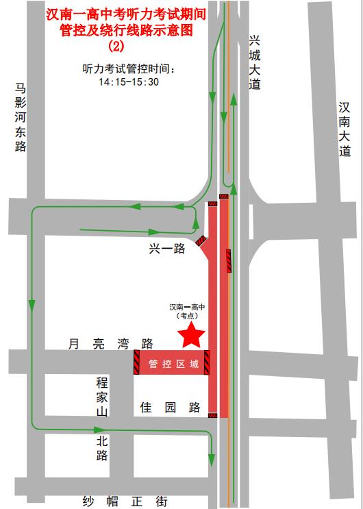 6月21日14:15至15:30英语听力考试期间新增管控路段: