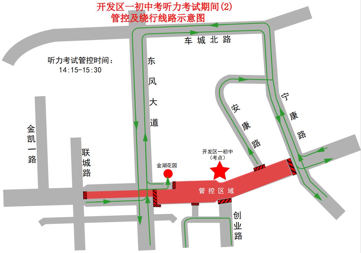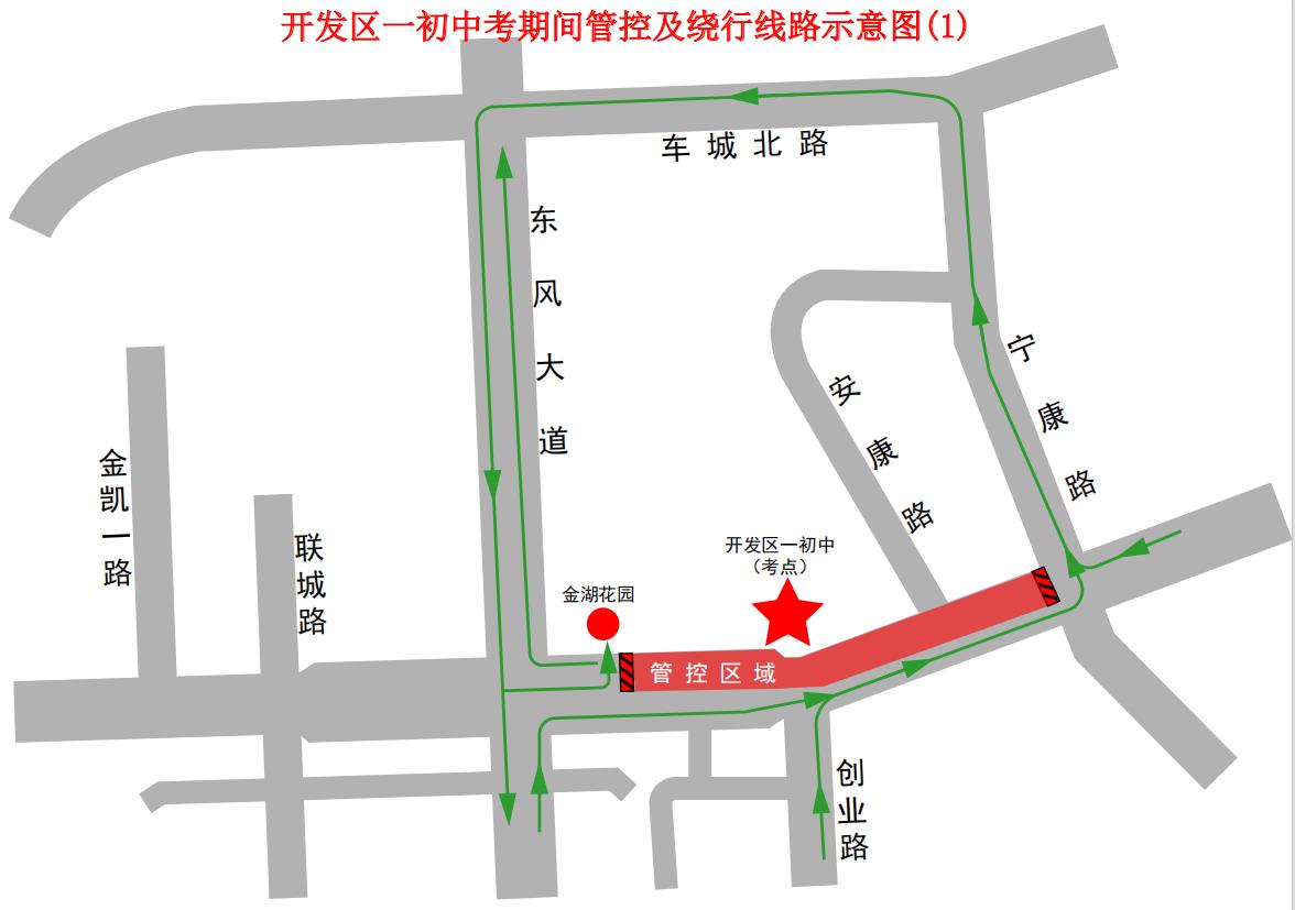 神龙大道(东风大道至宁康路口)路段禁止机动车通行(考生车辆凭准考证可进入)。