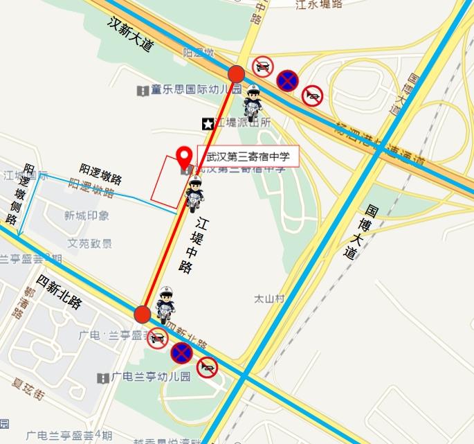 6月21日14时15分至15时,江堤中路(汉新大道至四新北路)路段禁止机动车通行。