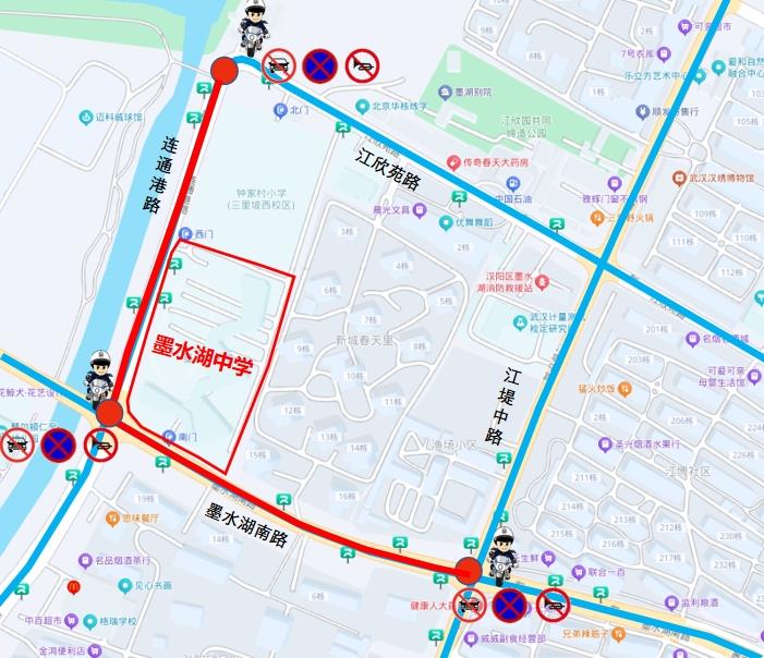 6月21日14时15分至15时,连通港路(墨水湖南路至江欣苑路)、墨水湖南路(江堤中路至连通港路)路段禁止机动车通行。
