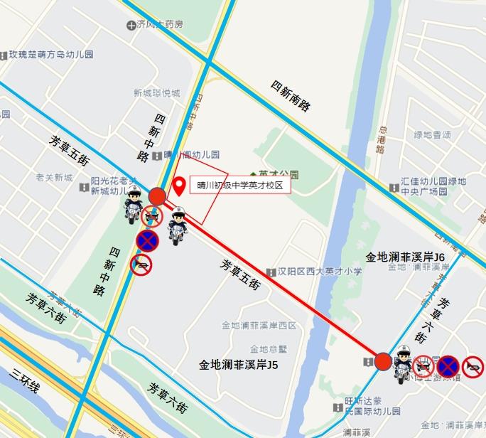 6月21日14时15分至15时,芳草五街(芳草六街至四新中路)路段禁止机动车通行。