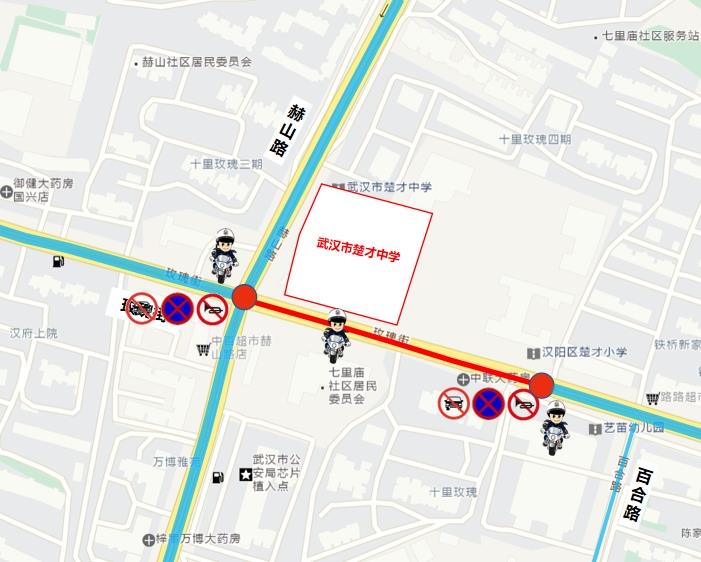 6月20日、21日7时至18时30分、6月22日7时至12时,芳草五街(芳草六街至四新中路)路段禁止车辆停放,周边道路禁止鸣笛。