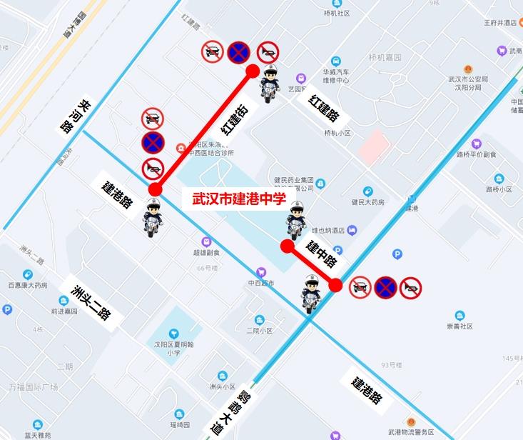 6月20日、21日7时至18时30分、6月22日7时至12时,江堤中路(汉新大道至四新北路)路段禁止车辆停放,周边道路禁止鸣笛。