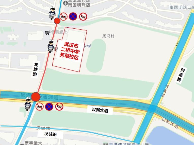 6月21日14时15分至15时,龙珠路(汉新大道至南国明珠一期东2门)路段禁止机动车通行。