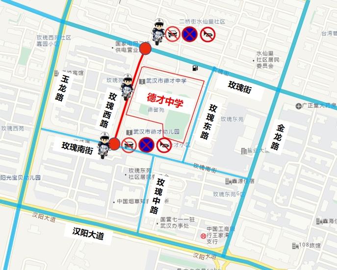 汉阳交警温馨提示:根据武汉市气象台发布的消息,中考期间正好是本次强降水集中期,可能有大到暴雨。请考生家长结合天气变化,为考生准备合适雨具,提前规划出行方式和路线,文明安全出行,沉着冷静参考。请广大市民尽量避开高峰时段和路段,为考生营造一个安静舒适的考试环境。