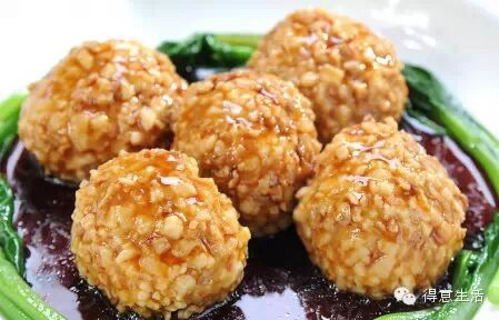 5、锅里放少许植物油,把丸子一个一个小心的放进去