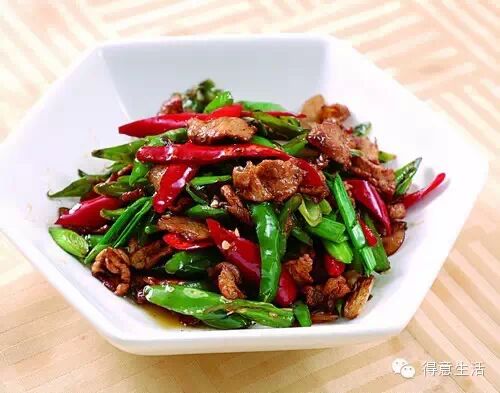 瘦肉400克、红尖椒4个、尖椒3个、青蒜1棵、植物油1汤匙、姜2片、蒜5瓣、生抽1汤匙、老抽1/2汤匙、料酒1/2汤匙、食盐1茶匙、鸡精1/2茶匙