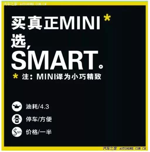 还有Smart和MINI这两个老冤家。MINI率先发难,将“SMART”译为“聪明”,smart随即将“MINI”翻译为“小巧精致”进行还击。