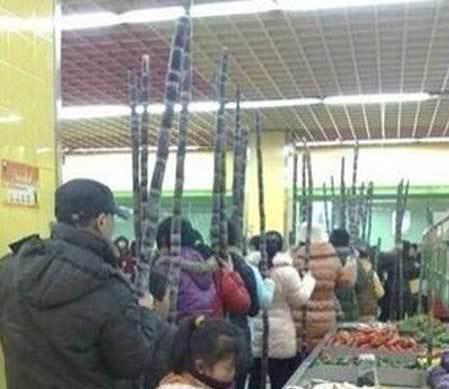 超市甘蔗促销,尼玛感觉像丐帮大会呢?