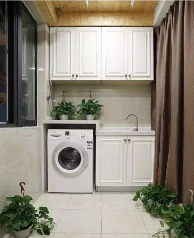 洗衣机放浴室怕受潮,放厨房又占地方,阳台可以好好利用起来。通过定制置物架,把阳台的部分空间做成洗衣房,洗衣、晾衣、烫衣,都可在阳台上完成。除了洗衣外,还可以设计收纳柜,种植花草等等。