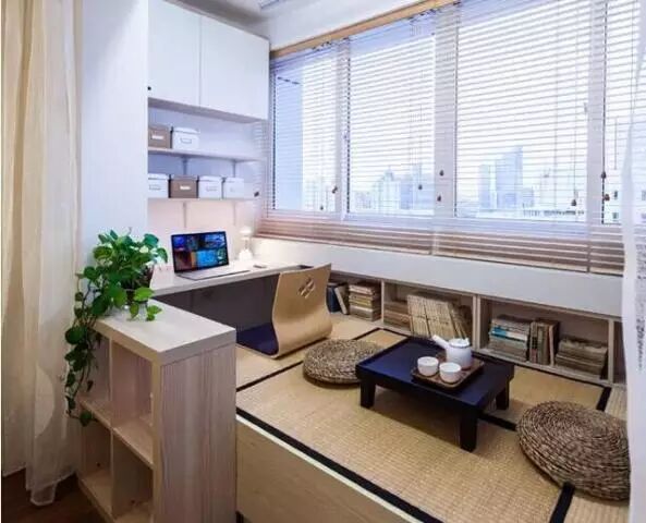 阳台改成榻榻米,是比较常见的改造方式,靠窗的可以呼吸新鲜空气,累了可以躺下休息,生活就要这么自在,朋友来还可以一起喝茶聊天。